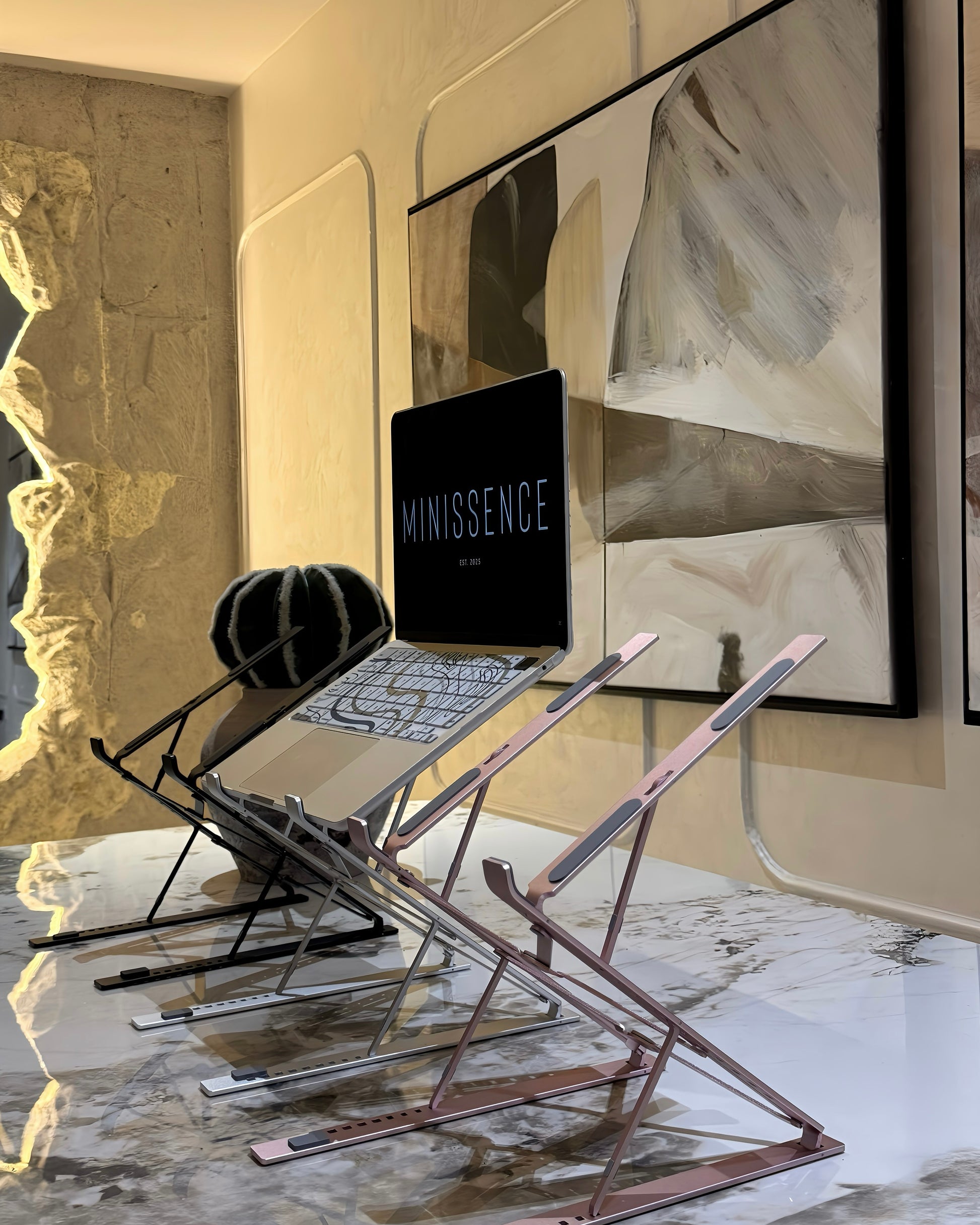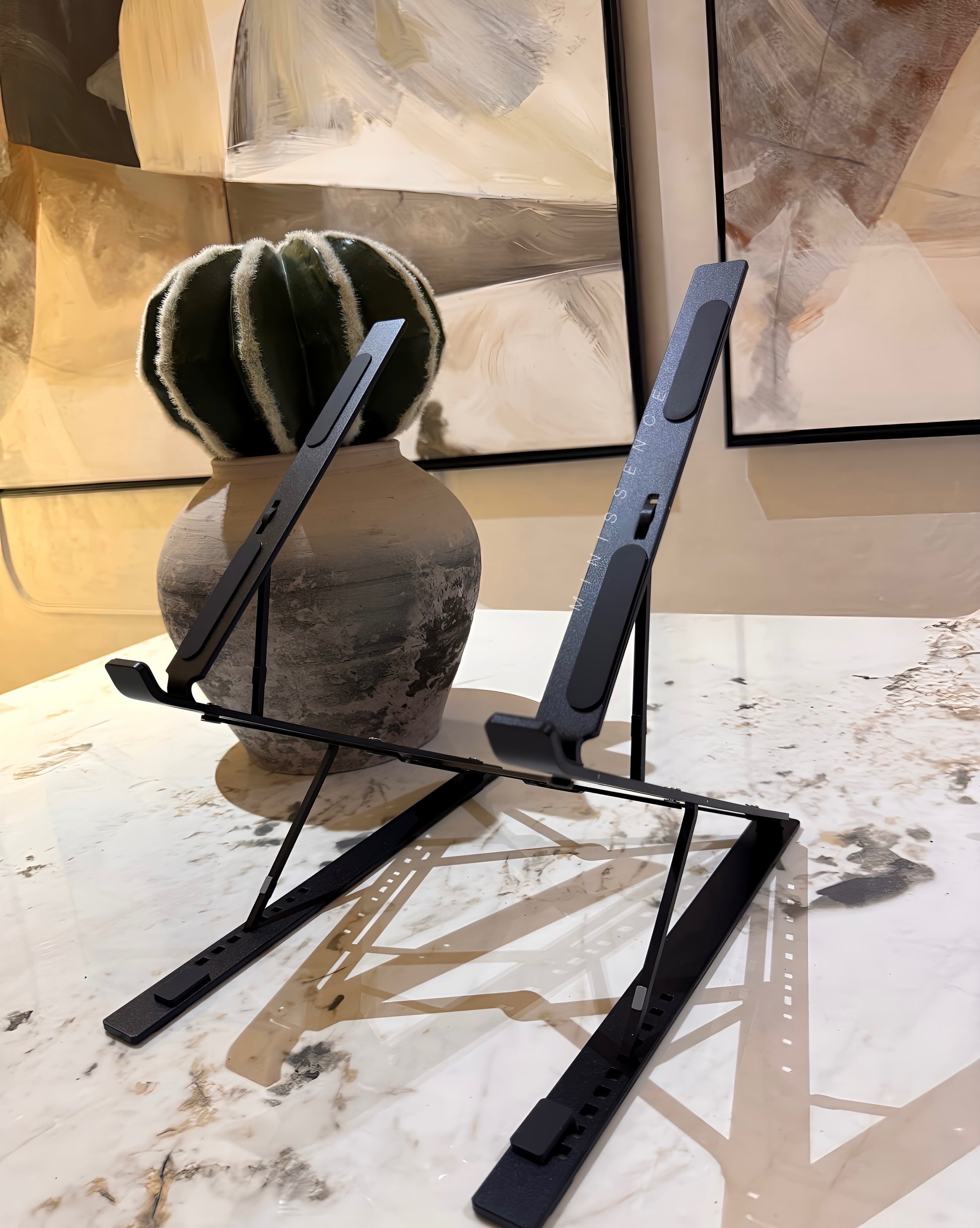 The Double Layer Laptop Stand is designed for maximum stability and ergonomic support. Crafted from premium aluminum alloy, it features a double triangle stability design that ensures a firm hold for laptops up to 18 inches. With multiple levels of height adjustment, this stand allows you to customize your viewing angle for better posture and reduced neck strain. It’s lightweight yet sturdy build makes it perfect for home, office, or on-the-go use. A storage bag is included for easy portability.