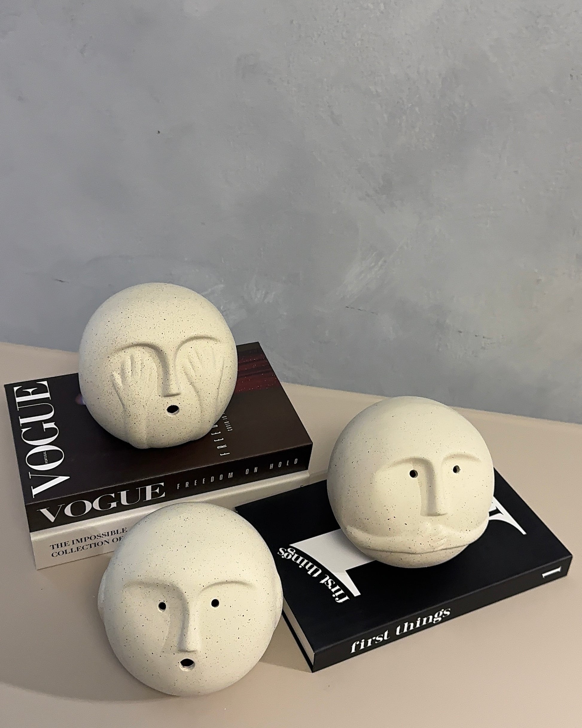 Bring character and creativity into your space with the Mimo Face Set, a trio of sculpted faces that blend art, humor, and design. Each piece is crafted with expressive detail, capturing different mood. Their rounded, textured form and neutral tone make them easy to style across consoles, shelves, or tabletops.