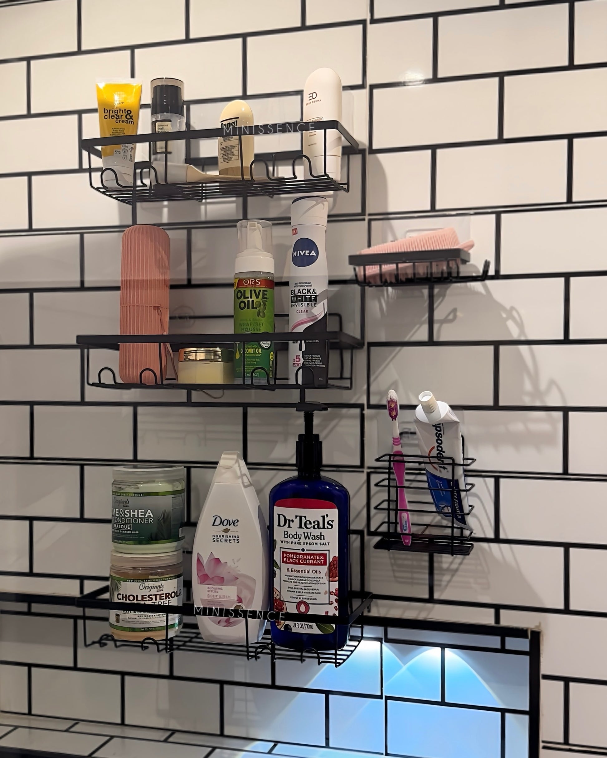 Keep your bath essentials organized and within reach with our Shower Caddy Wall Rack. Designed to hold your soaps, shampoos, body wash, toothbrushes, and more without drilling or damaging your walls. Crafted from durable, rust-resistant metal, it’s perfect for humid environments like your bathroom. The sleek, open design keeps items dry and ventilated, while the strong adhesive mount ensures a firm hold on smooth surfaces.