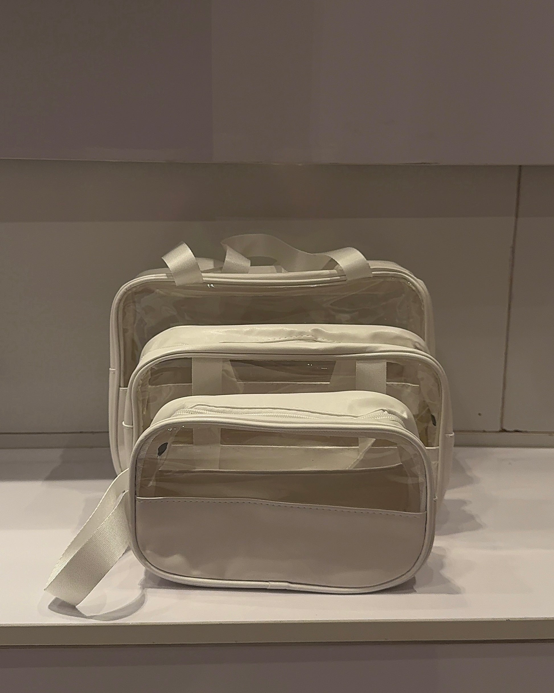Your all-in-one companion for organized, effortless travel or everyday use. Made from durable, waterproof material to protect your belongings, these sleek bags hold everything from skincare, toiletries, and makeup to jewelry, small tech gadgets, personal hygiene items and more. Lightweight yet spacious, they keep your essentials neatly in place.